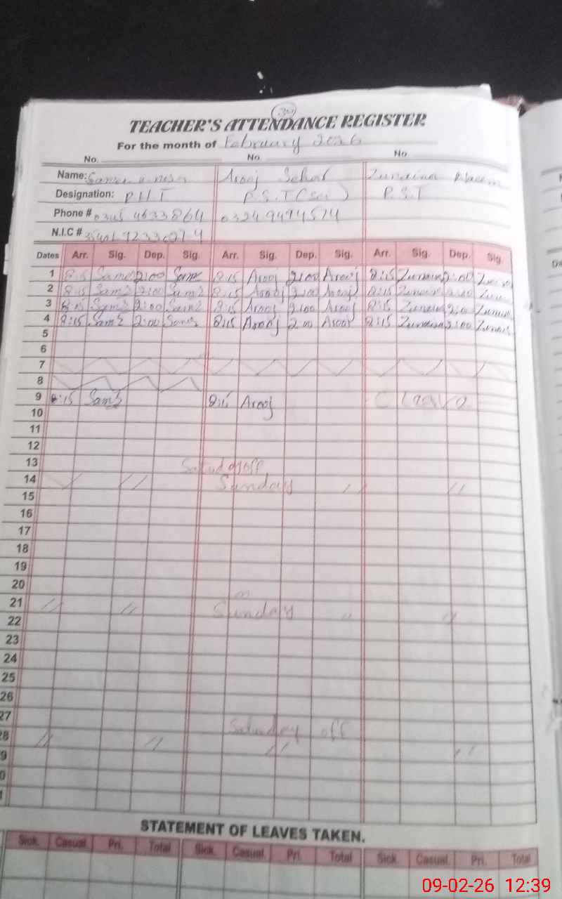 | Name: SA**** AL**** AS**** Designation: (School Headmaster's/Headmistress's) PST Phone/Cell Number: 03**** |