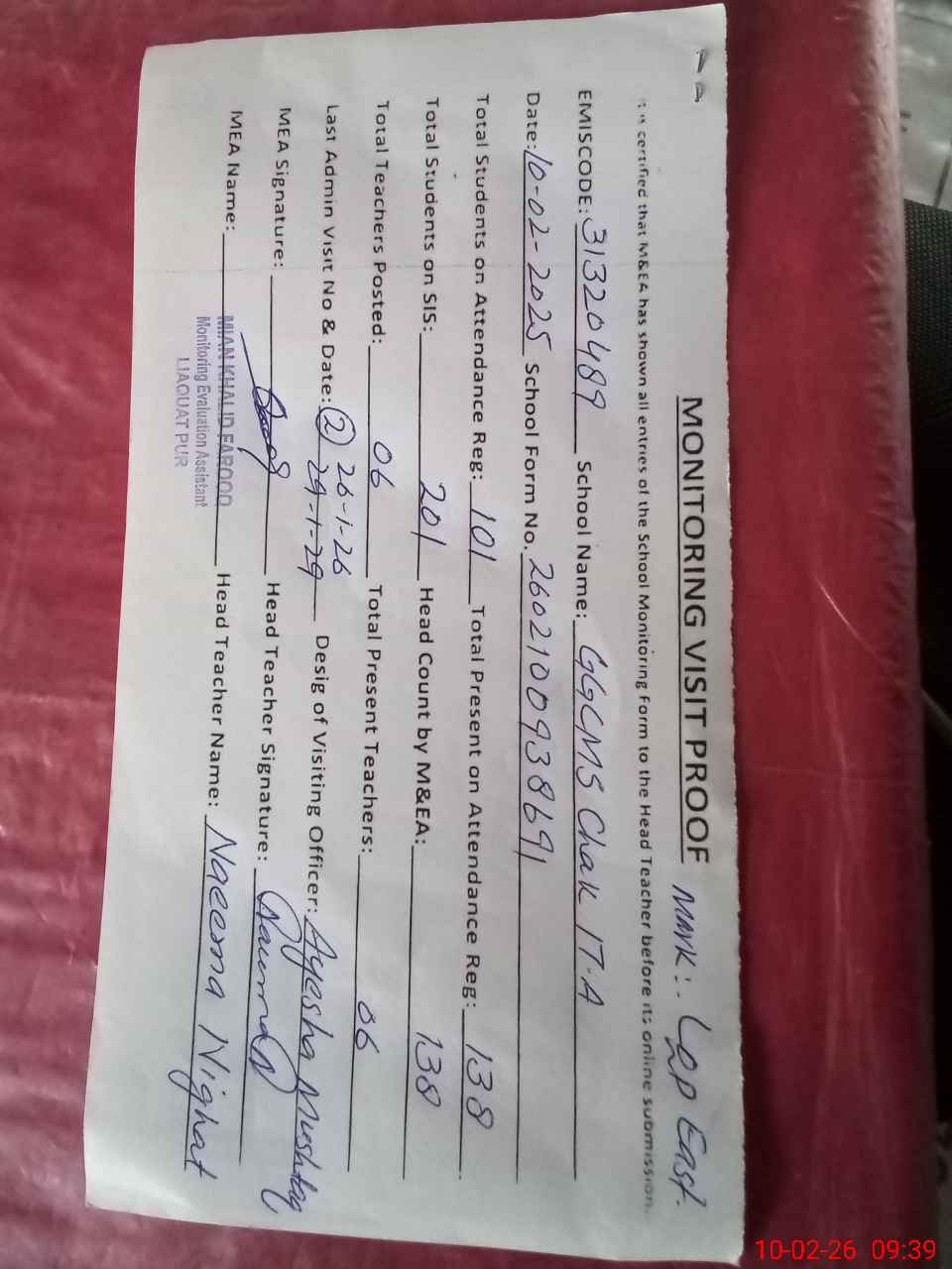 | EMIS Code: 31320489 | Name of School: GGCMS CHAK NO.17/A | |||