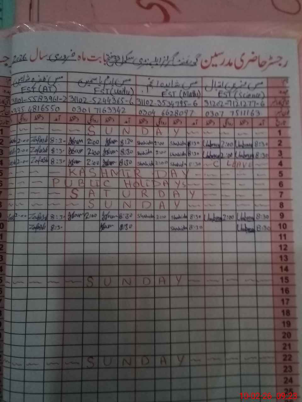 | Name: Um**** Iq**** Designation: (School Headmaster's/Headmistress's) EST Sci Phone/Cell Number: 03**** |