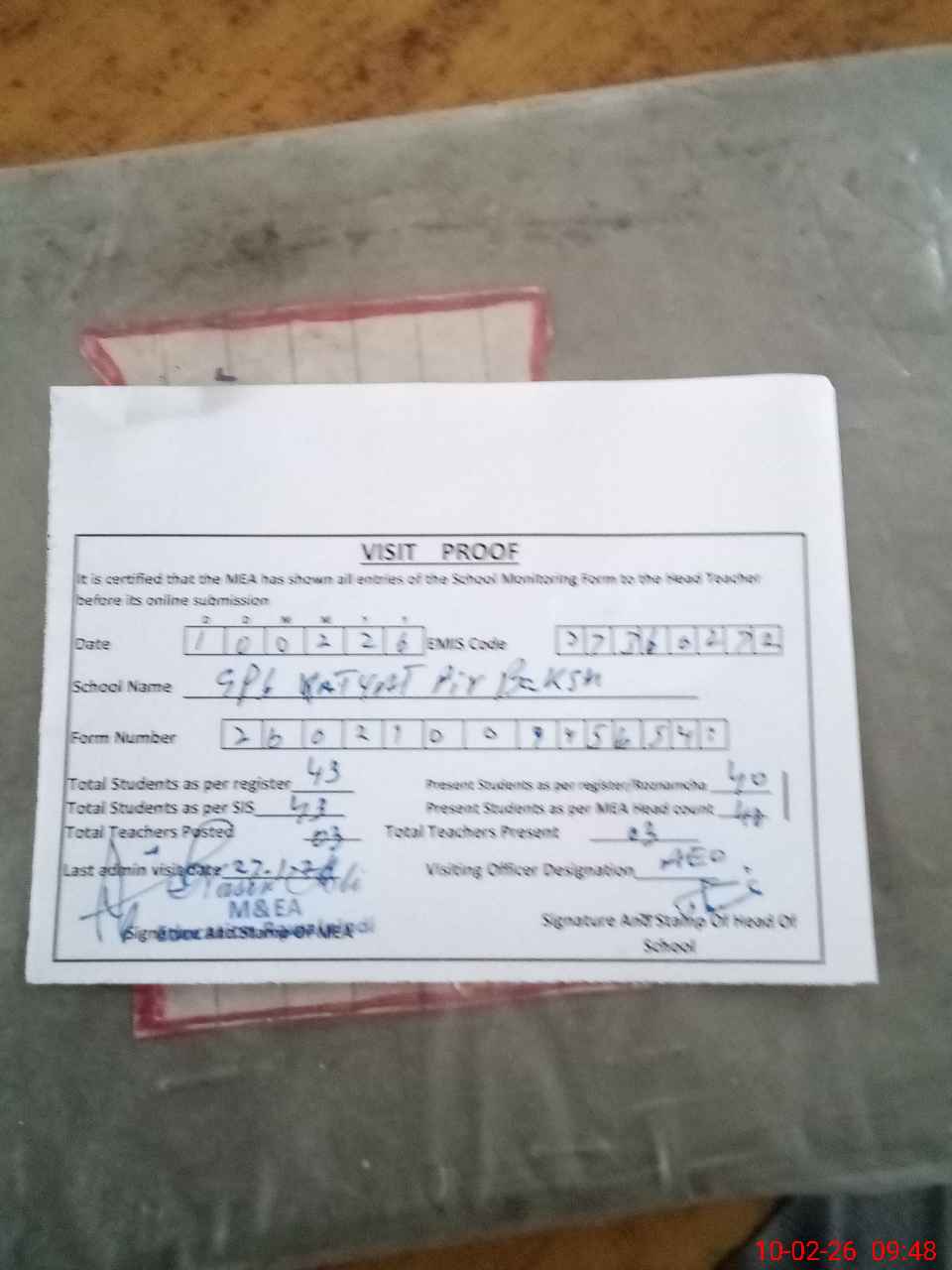| EMIS Code: 37360272 | Name of School: GPS KANAYAT PIR BAKHSH | |||
