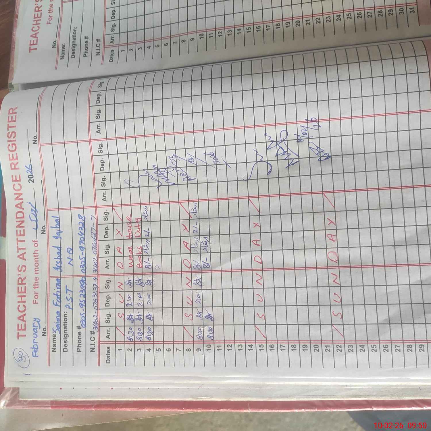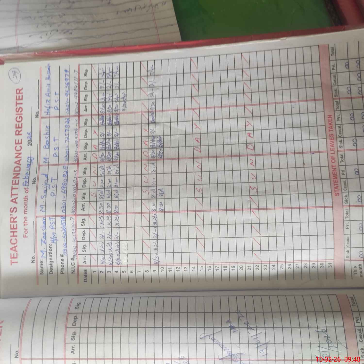 | Name: Mu**** Ze**** Designation: (School Headmaster's/Headmistress's) PST Phone/Cell Number: 03**** |