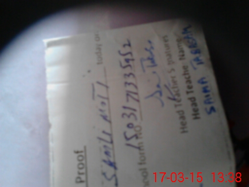 | Name: SA**** TA**** SU**** Designation: (School Headmaster's/Headmistress's) S.S.T.(Arts) Phone/Cell Number: 03**** |