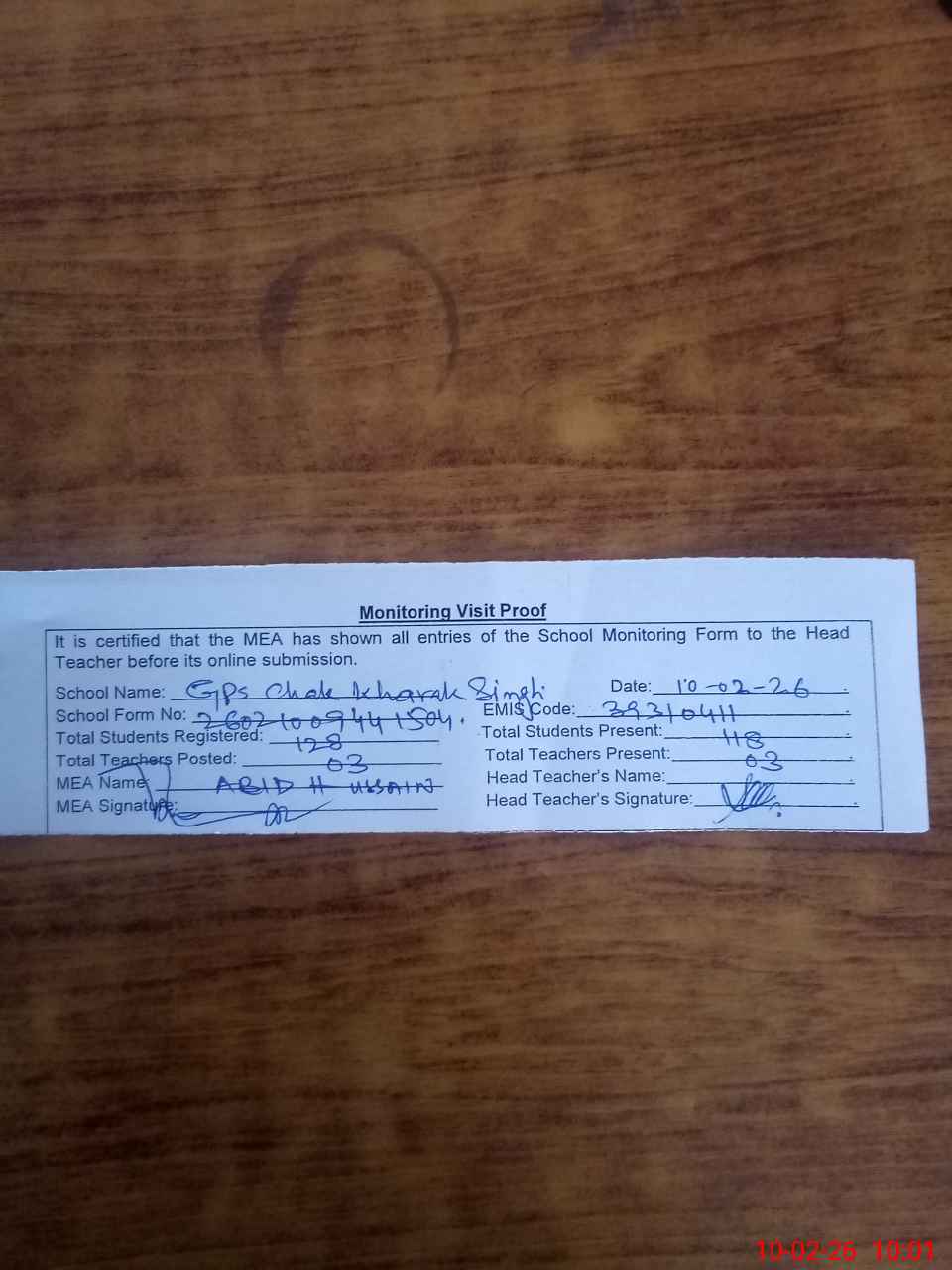 | EMIS Code: 39310411 | Name of School: GPS CHAK KHARAK SINGH | |||