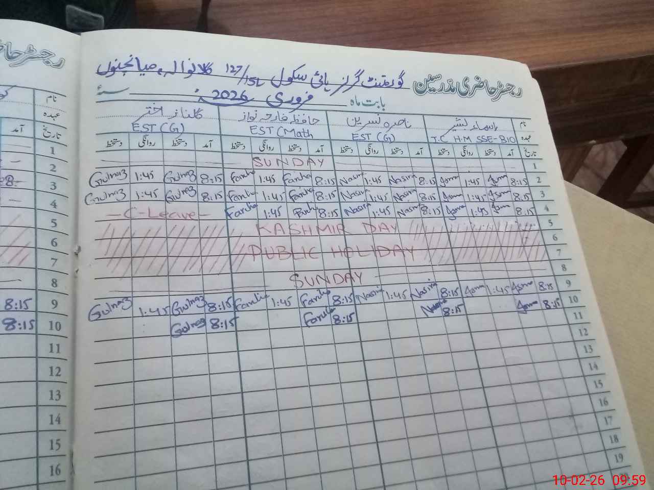 | CNIC | Full Name | Designation | R/C | Absence During Last Calender Month |