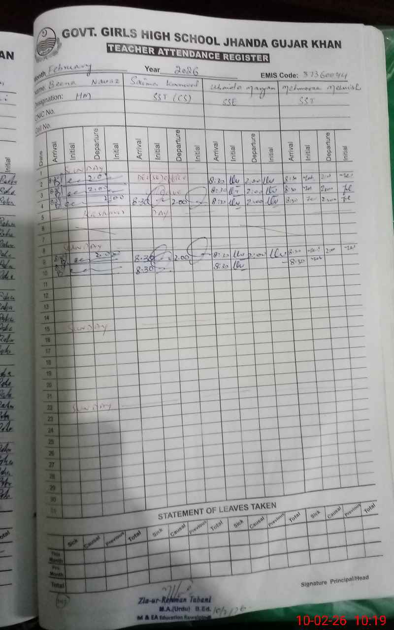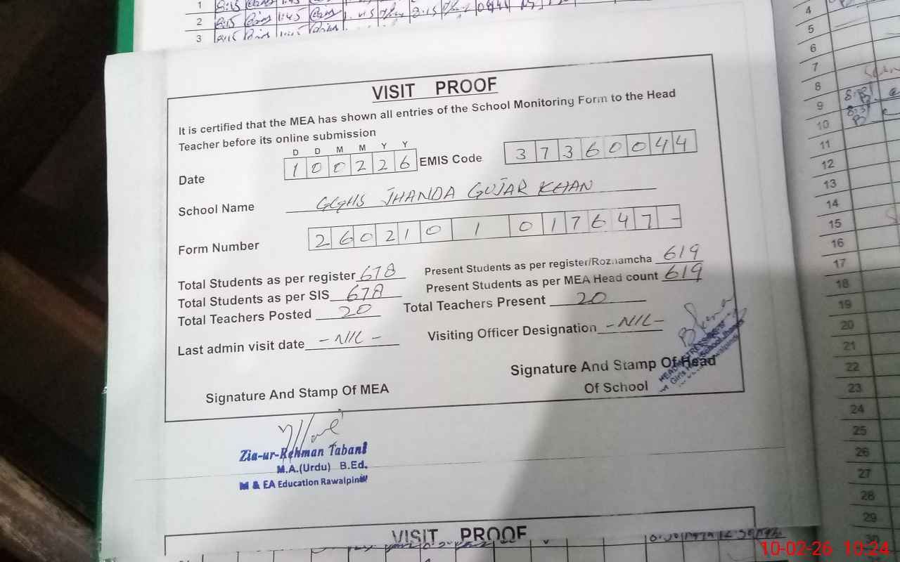 | EMIS Code: 37360044 | Name of School: GGHS JHANDA GUJAR KHAN | |||