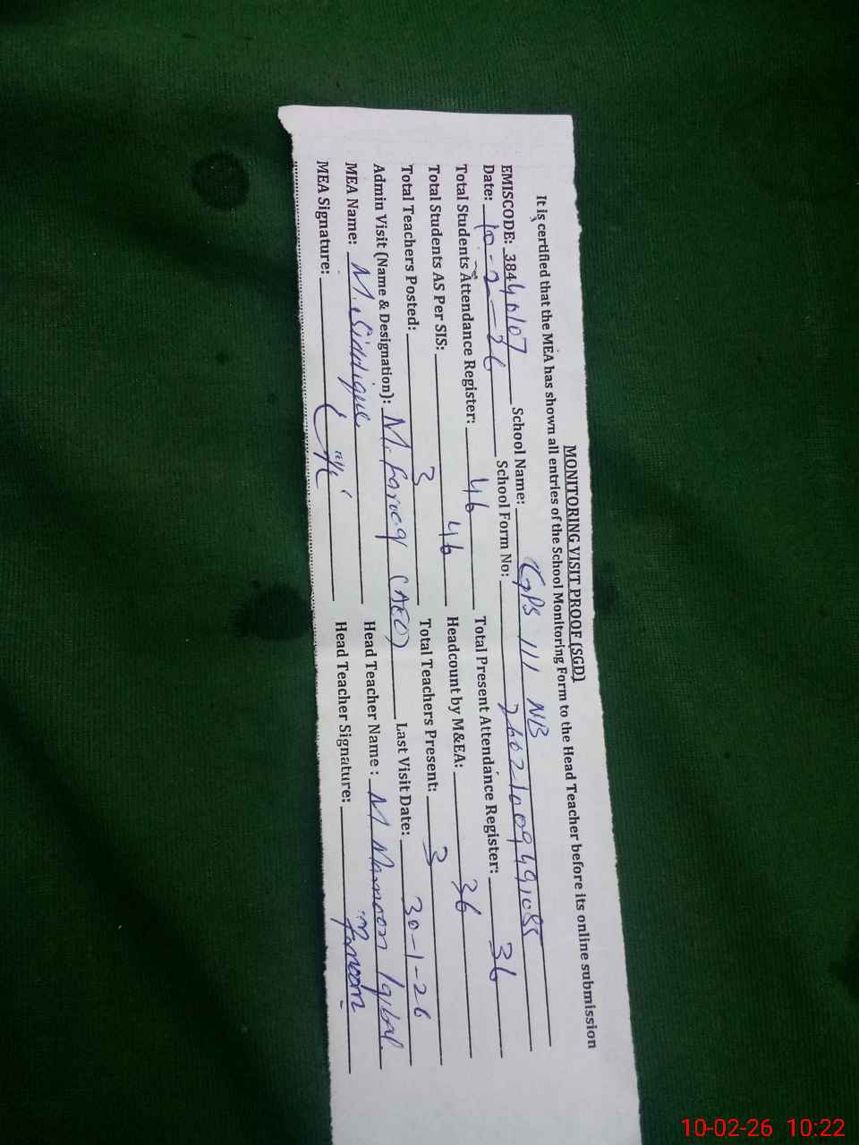 | Monitoring Date: 10-02-2026 | Start Time: 10-02-2026 09:49 AM | End Time: 10-02-2026 10:25 AM | Name of MEA: MU**** SI**** | |