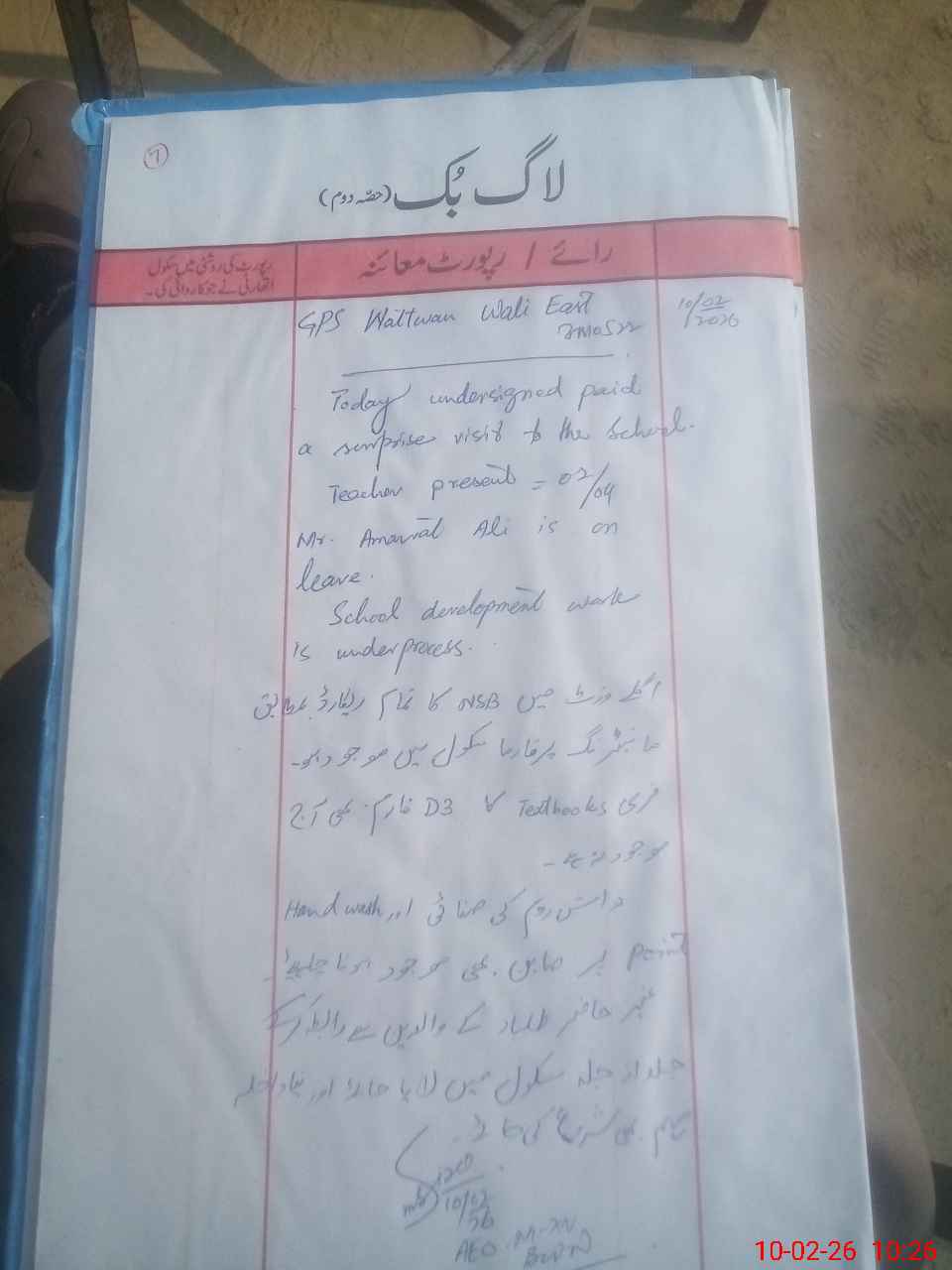 | EMIS Code: 31110522 | Name of School: GPS WATTWAN WALI EAST | |||