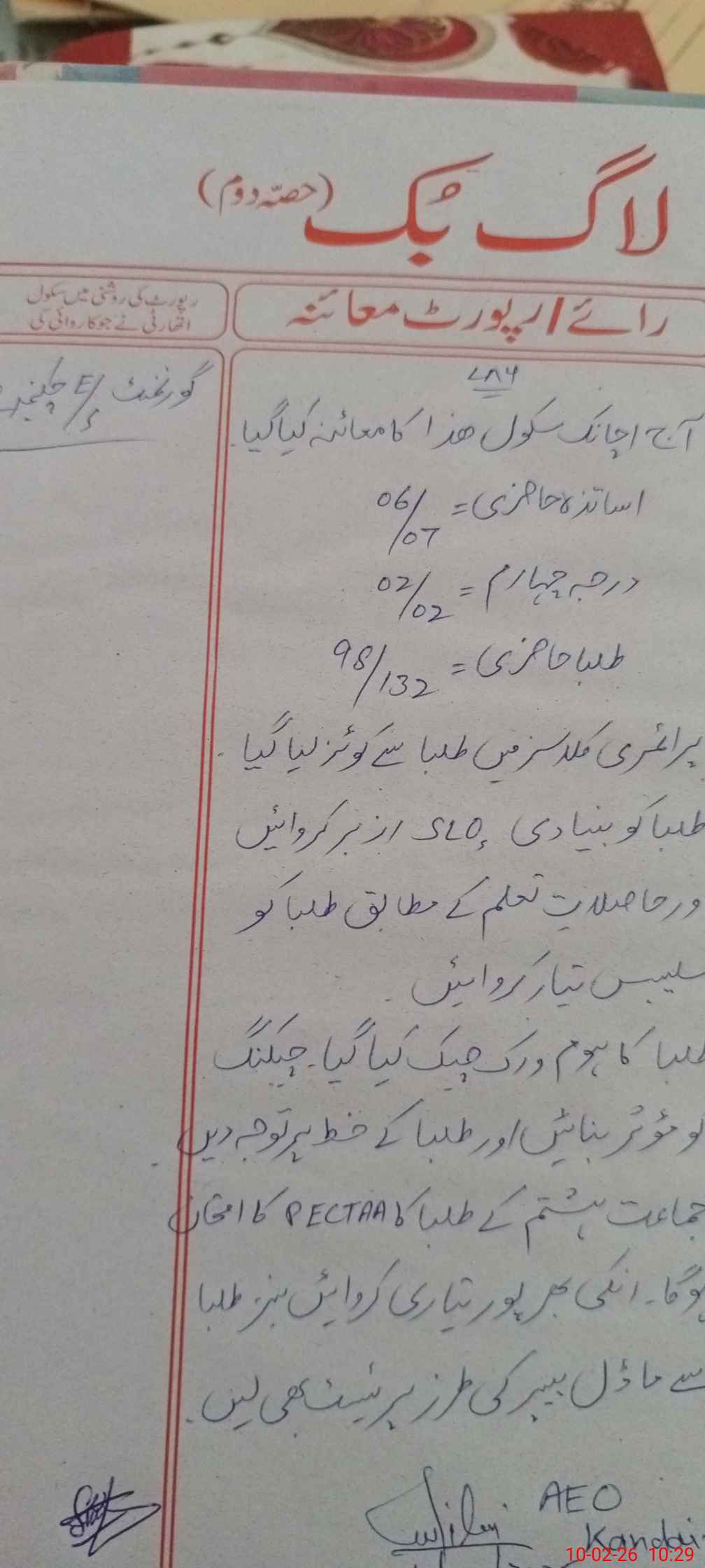 | Certified that this School was Inspected by the Undersigned MEA/DMO Today and the Information Stated Above is as Per Record. | |||||