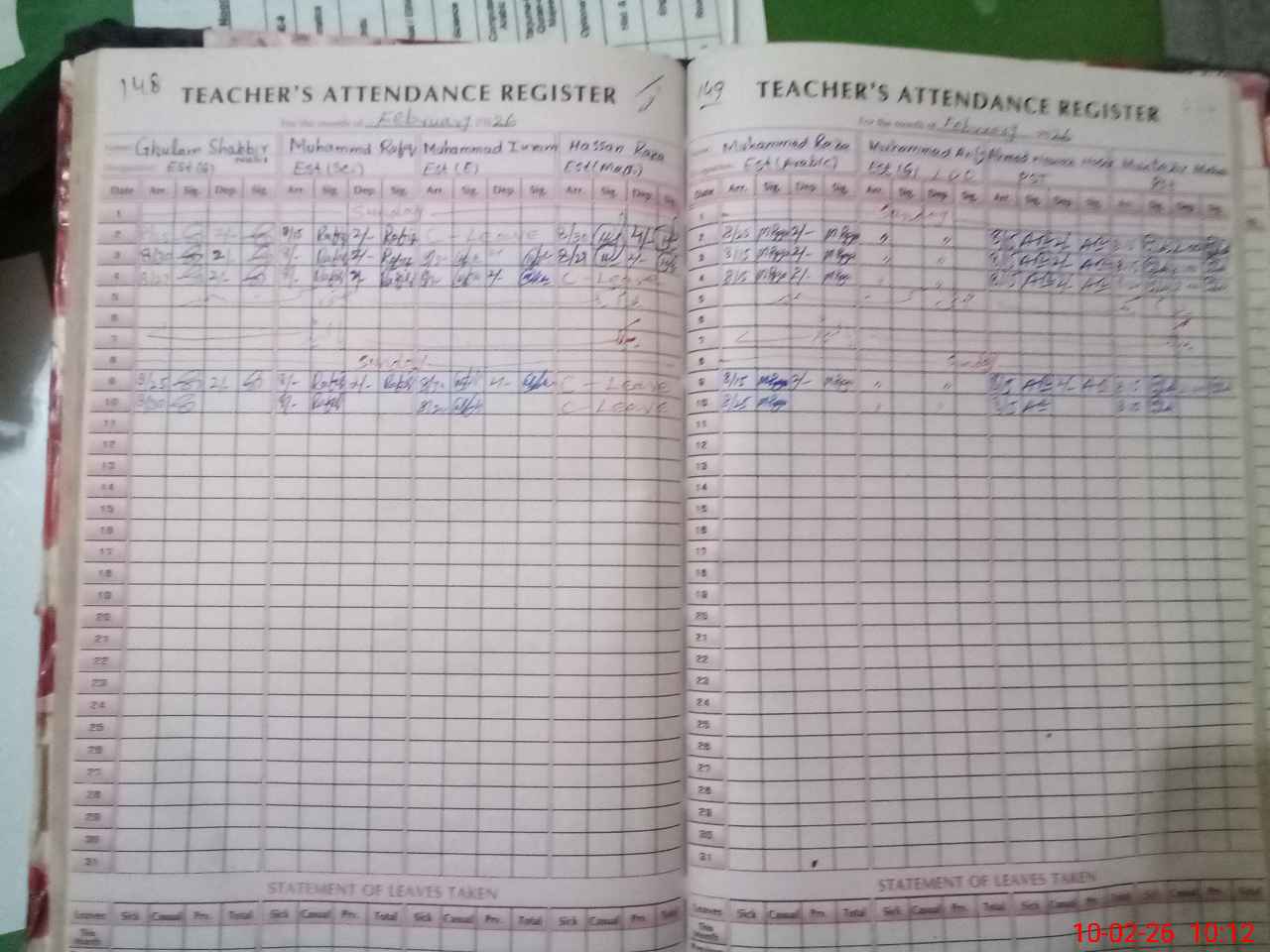 | Leave | Duty | Absent | Maternity | Medical | Ex- Pak |
