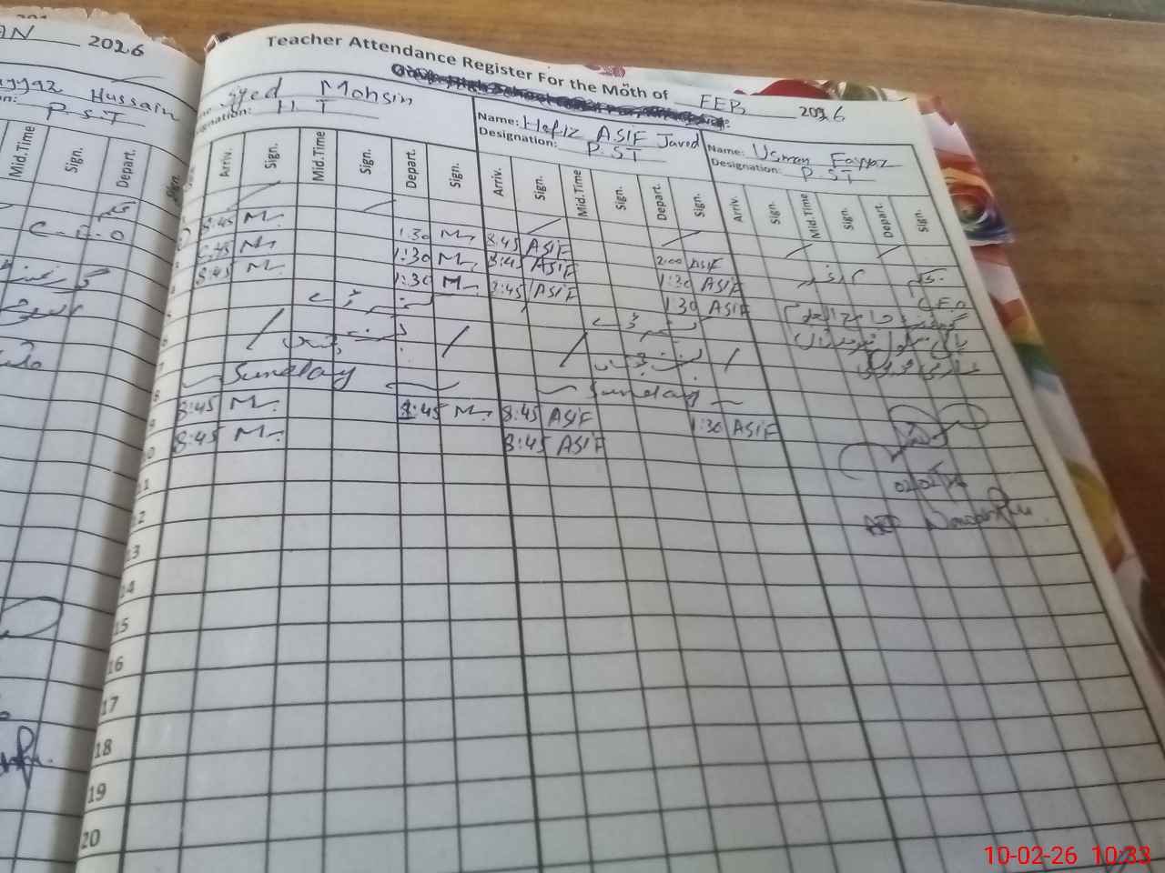 | CNIC | Full Name | Designation | R/C | Absence During Last Calender Month |