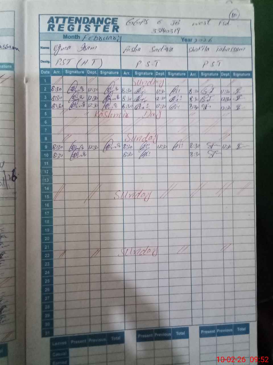 | Name: Uz**** Ir**** Designation: (School Headmaster's/Headmistress's) PST Phone/Cell Number: 03**** |