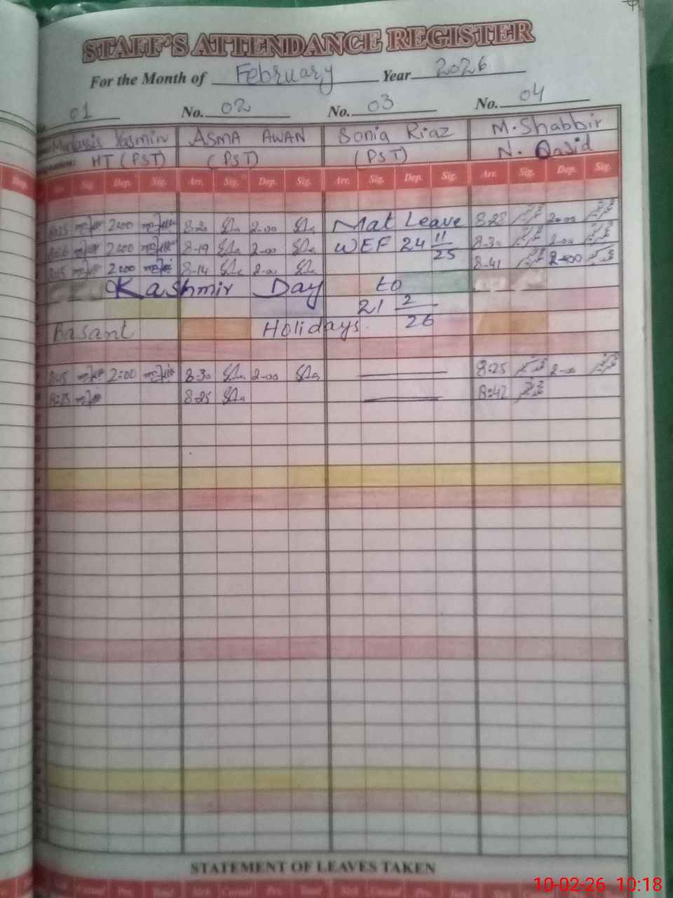 | District: LAHORE | Tehsil: SHALIMAR | Markaz: SHALIMAR-FEMALE | Level: Primary | |