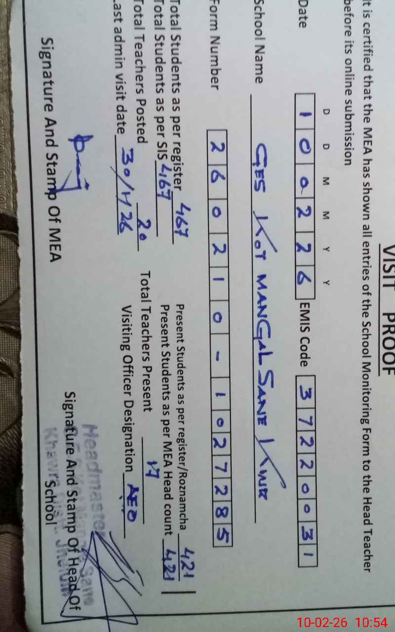 | EMIS Code: 37220031 | Name of School: GES KOT MANGAL SANE KHEWRA | |||