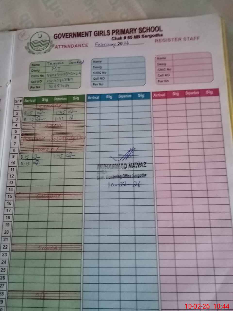 | Name: IF**** PA**** Designation: (School Headmaster's/Headmistress's) PST Phone/Cell Number: 03**** |
