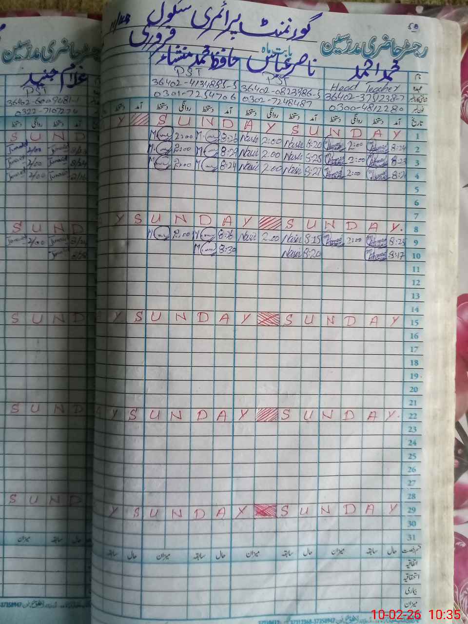 | Name: MAh**** Designation: (School Headmaster's/Headmistress's) PST Phone/Cell Number: 03**** |