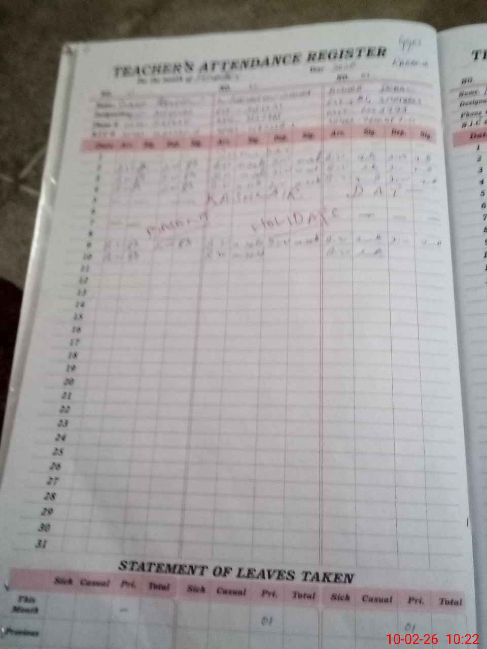 | Leave | Duty | Absent | Maternity | Medical | Ex- Pak |