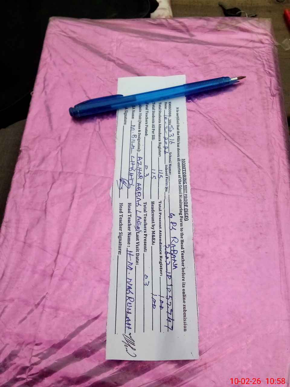 | Attendance Register | Head Teacher | MEA with School | Visit Proof |
