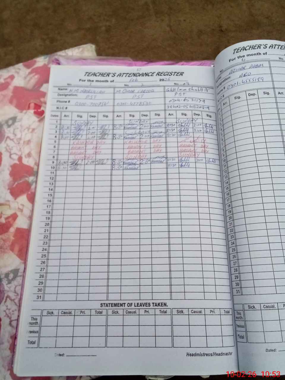 | Name: HA**** MU**** NA**** Designation: (School Headmaster's/Headmistress's) PST Phone/Cell Number: 03**** |