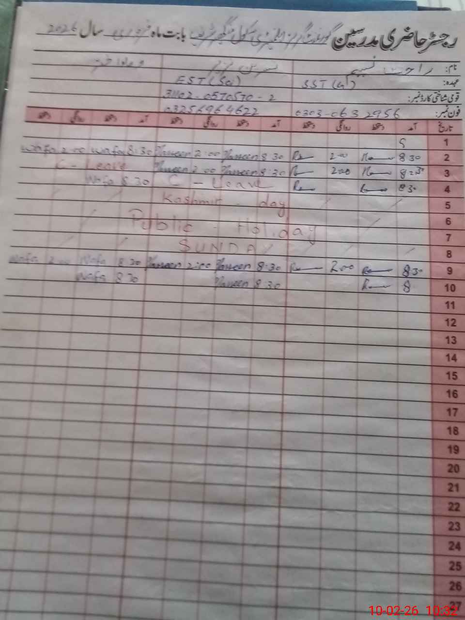 | Name: RA**** NA**** Designation: (School Headmaster's/Headmistress's) SST Phone/Cell Number: 03**** |