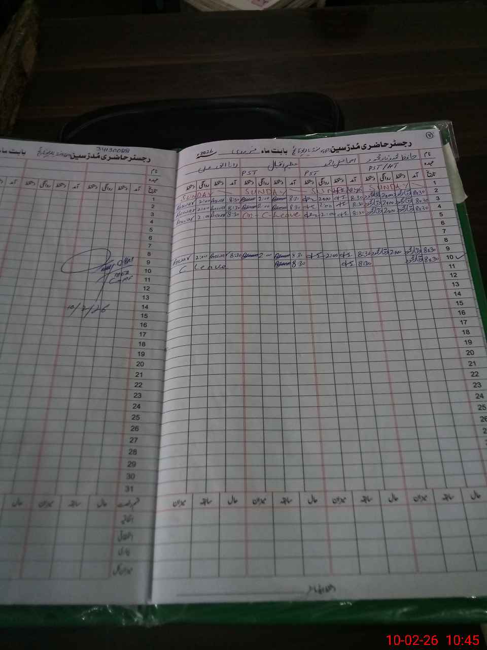 | CNIC | Full Name | Designation | R/C | Absence During Last Calender Month |
