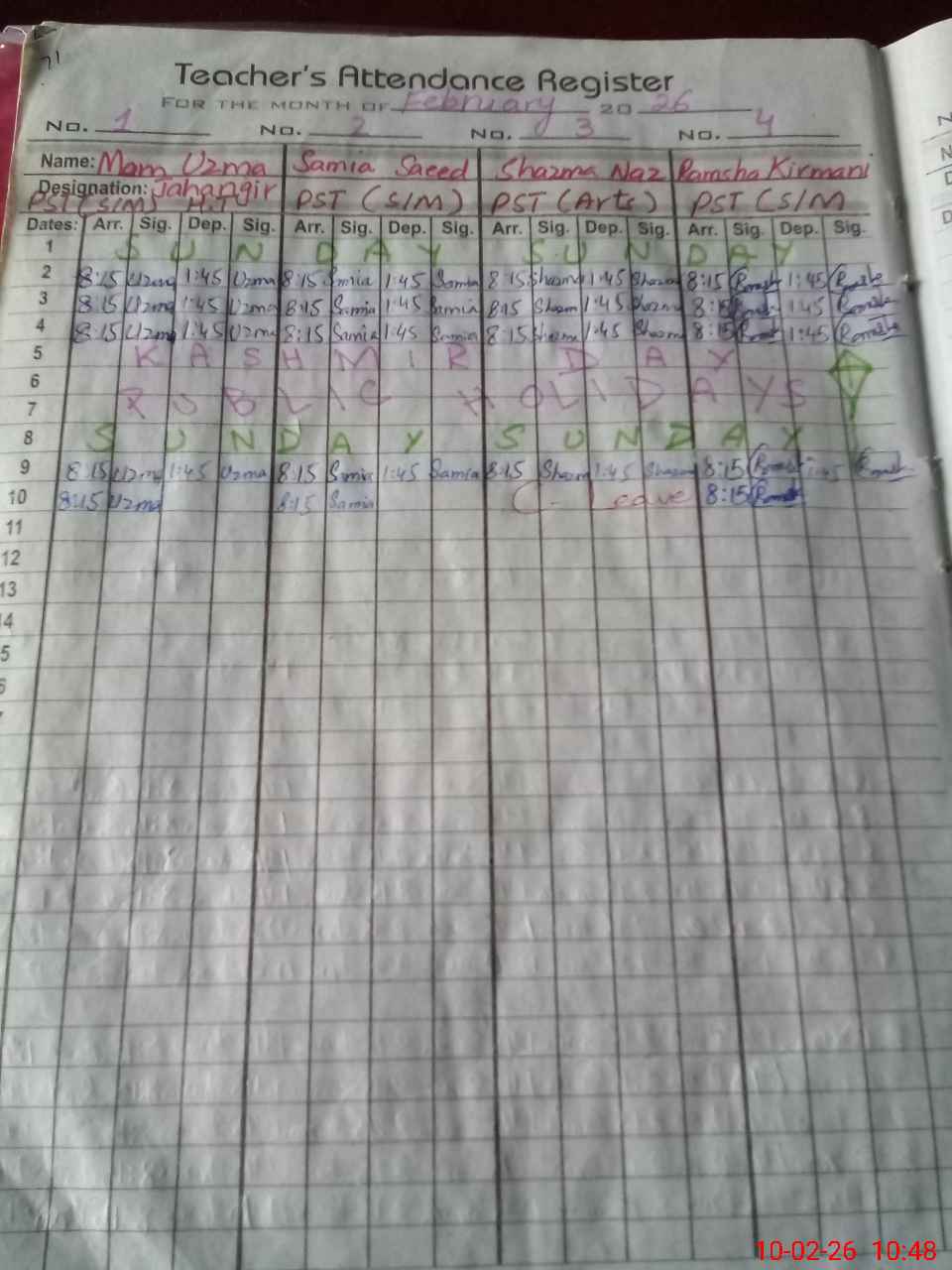 | 37**** | Sh**** Na**** | PST Arts | Regular | 0 | 0 | 0 | 0 | 0 | 0 | 0 | 0 | 0 | Casual |