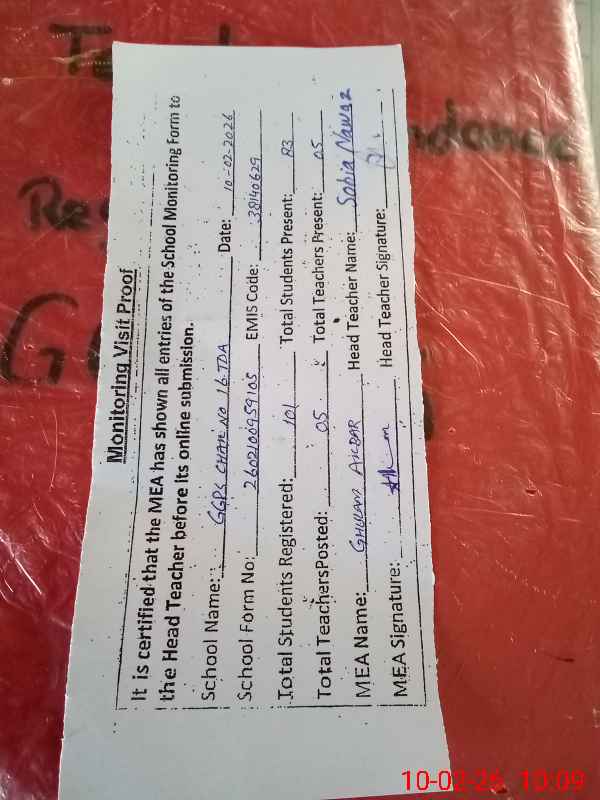 | EMIS Code: 38140629 | Name of School: GGPS CHAK NO.16/TDA | |||