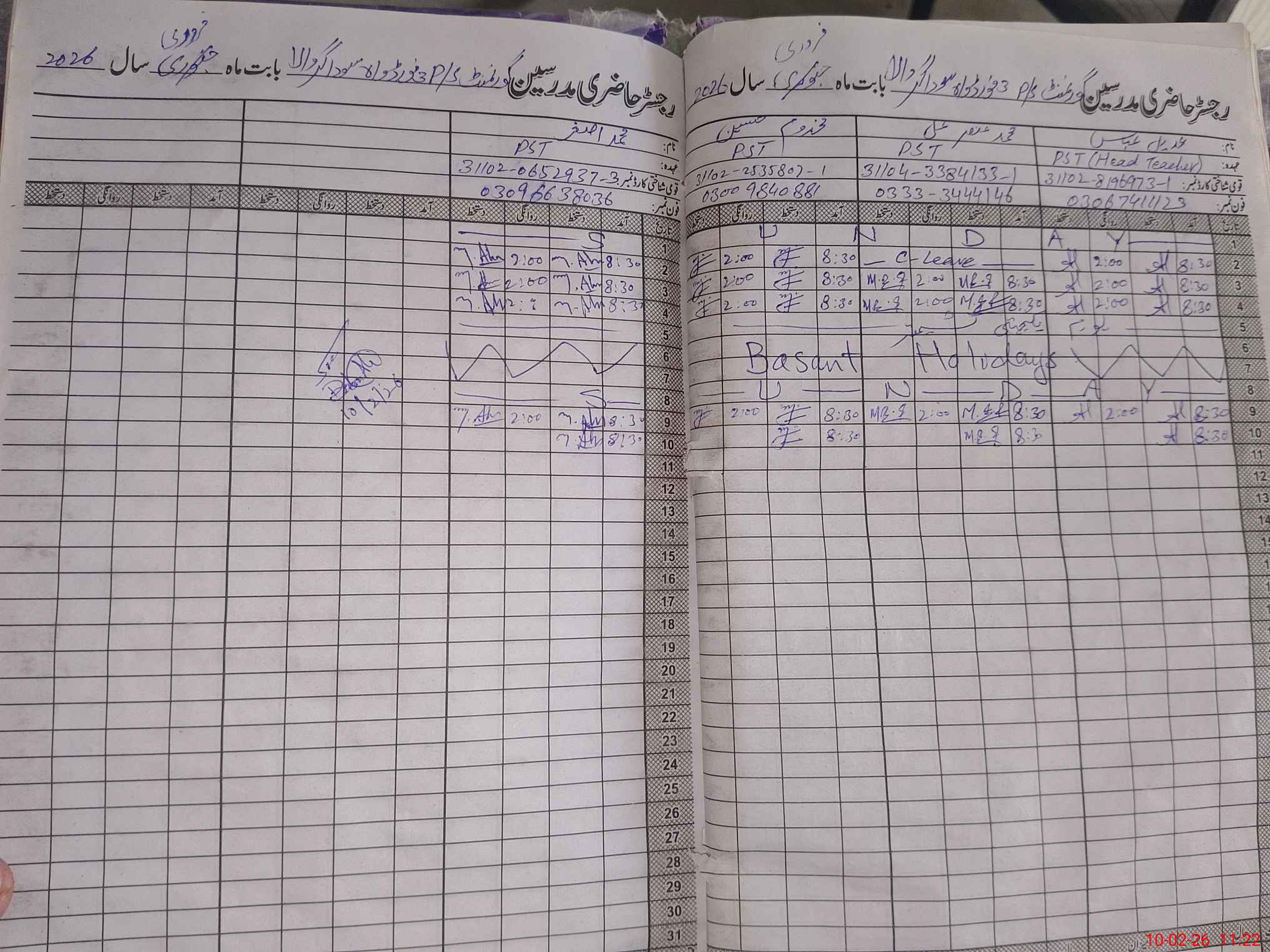 | CNIC | Full Name | Designation | R/C | Absence During Last Calender Month |