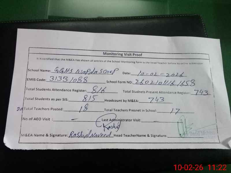 | EMIS Code: 31331088 | Name of School: GGHS WAPDA SCORP RYK | |||