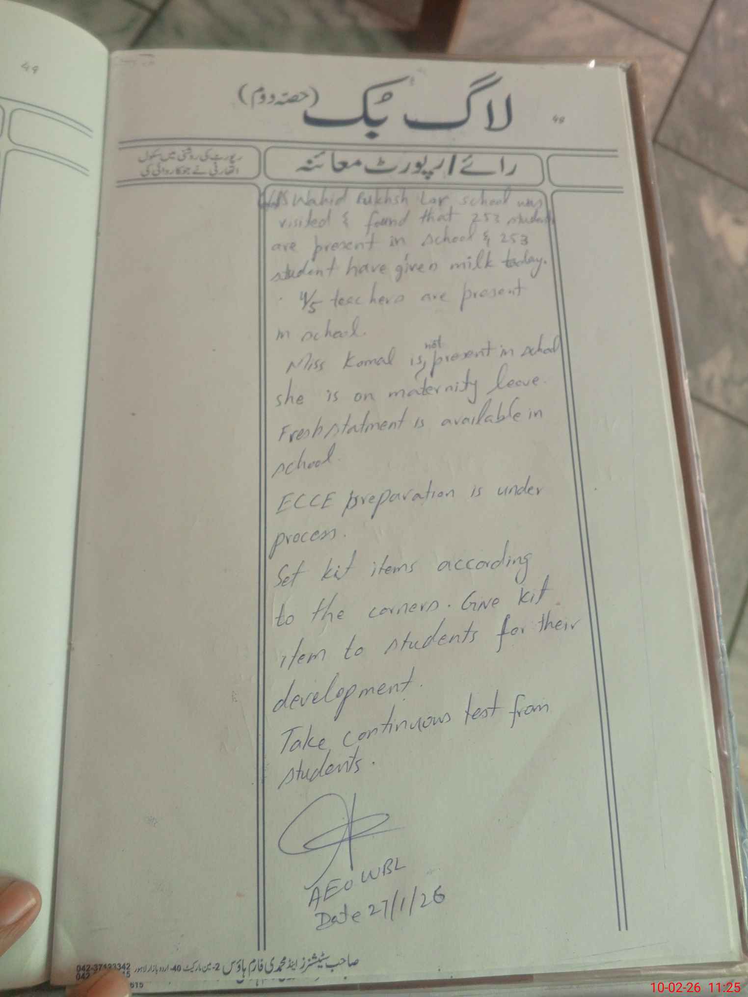 | Attendance Register | Head Teacher | MEA with School | Visit Proof |
