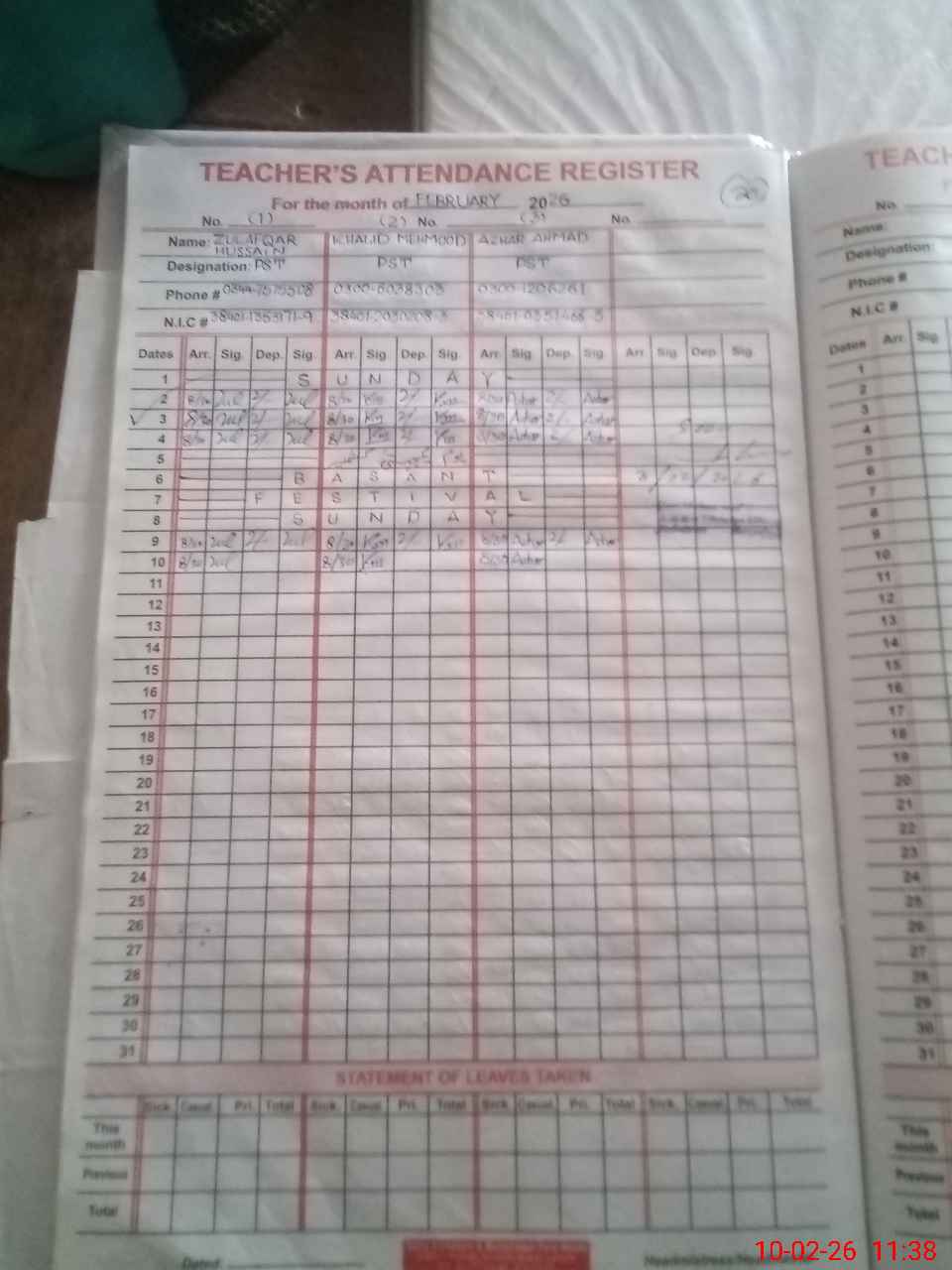 | Name: ZU**** HU**** Designation: (School Headmaster's/Headmistress's) PST Phone/Cell Number: 03**** |
