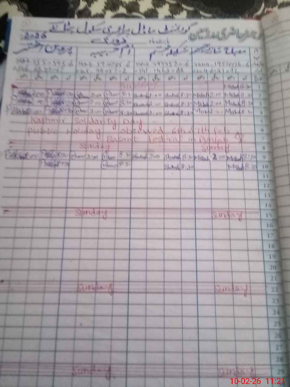 | CNIC | Full Name | Designation | R/C | Absence During Last Calender Month |