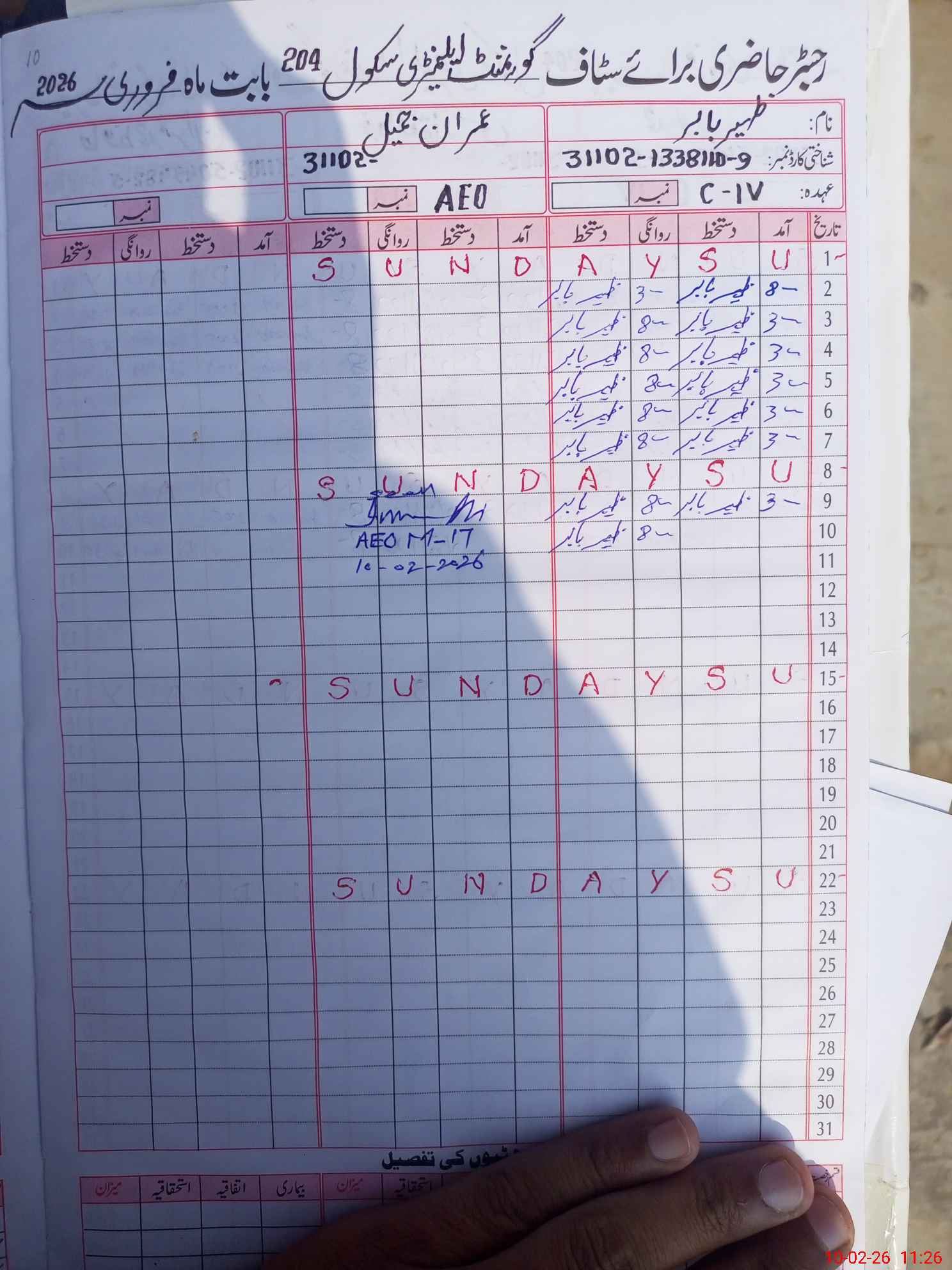 | CNIC | Full Name | Designation | R/C | Absence During Last Calender Month |