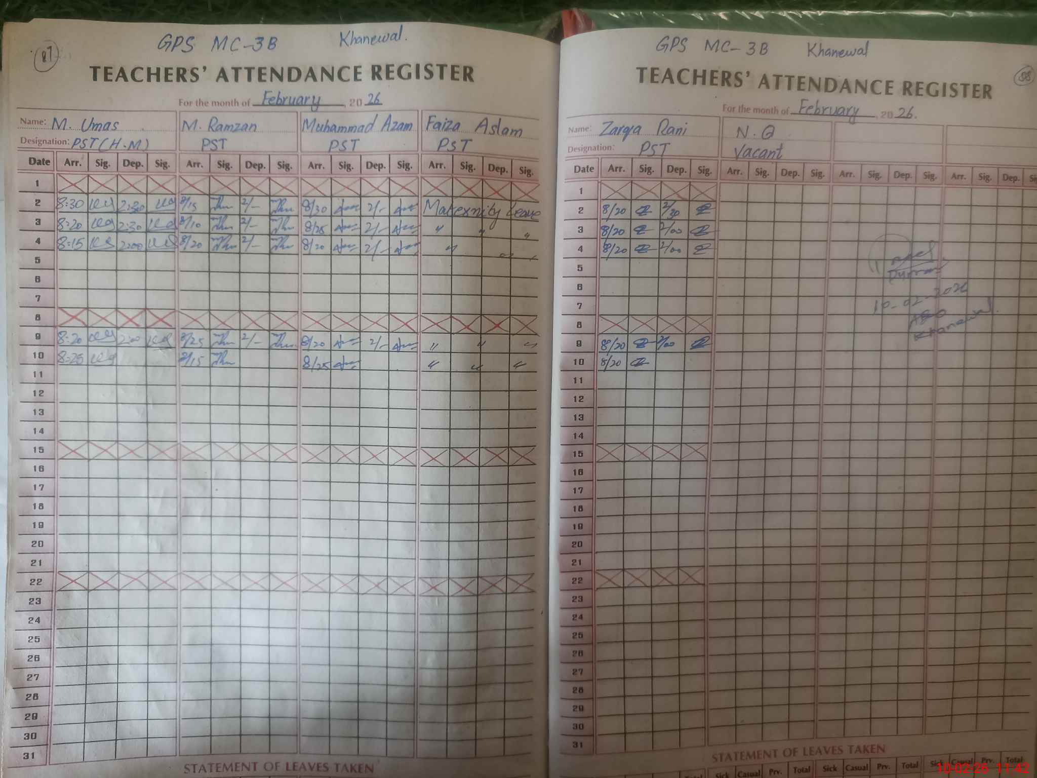 | 36**** | Mu**** Az**** | PST Science/Maths | Regular | 0 | 0 | 0 | 0 | 0 | 0 | 0 | 0 | 0 | Maternity |