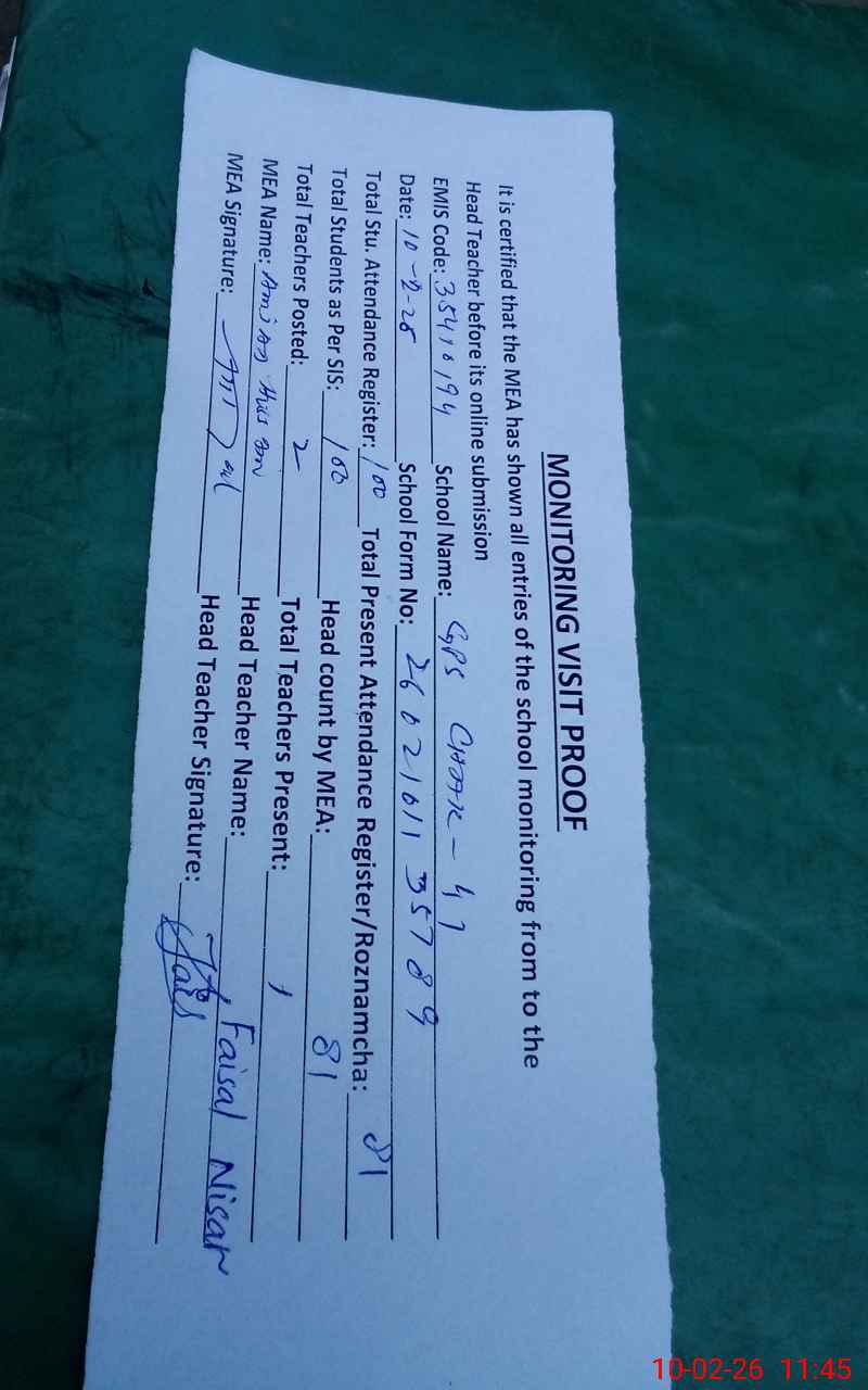 | EMIS Code: 35410194 | Name of School: GPS CHAK NO 41 | |||