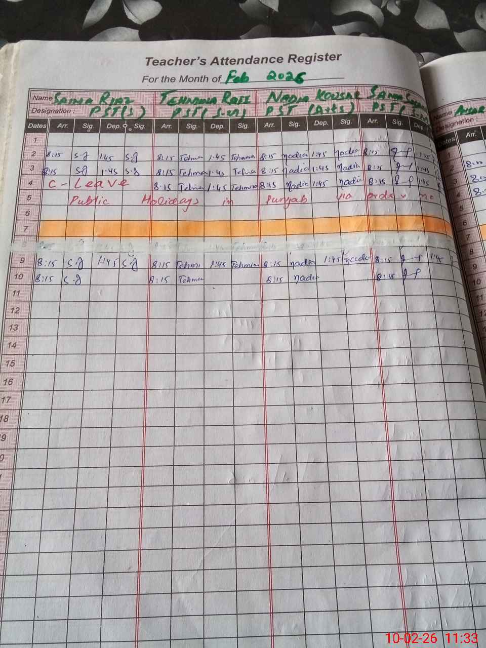 | Name: Sa**** Ri**** Designation: (School Headmaster's/Headmistress's) PST Phone/Cell Number: 03**** |