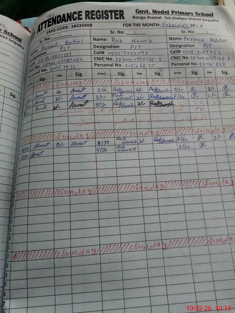 | Name: AS**** BA**** Designation: (School Headmaster's/Headmistress's) PST Phone/Cell Number: 03**** |
