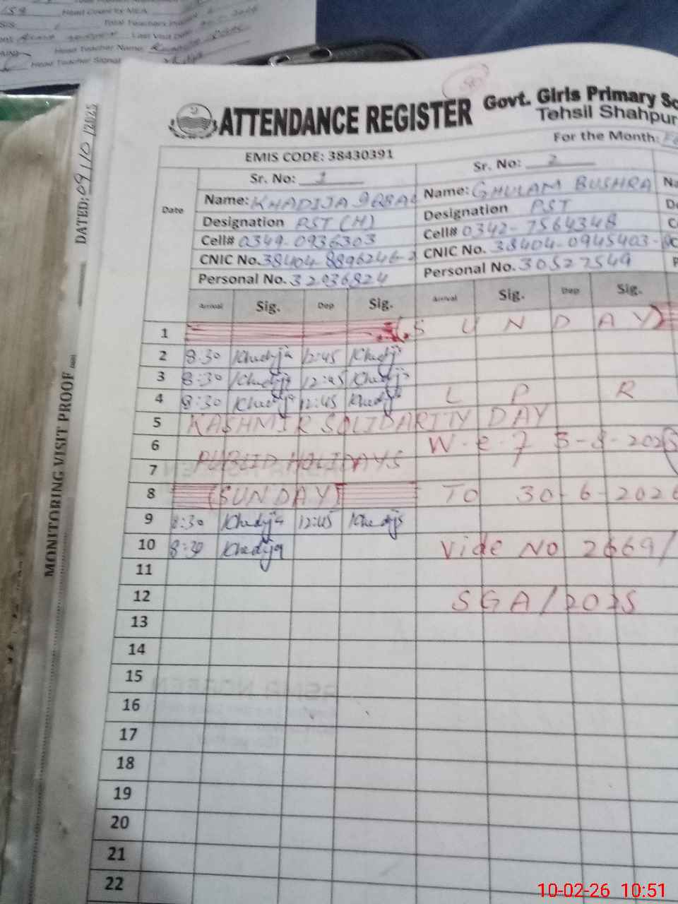 | Name: KH**** IQ**** Designation: (School Headmaster's/Headmistress's) PST Phone/Cell Number: 03**** |