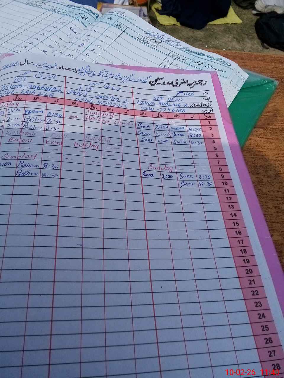| CNIC | Full Name | Designation | R/C | Absence During Last Calender Month |