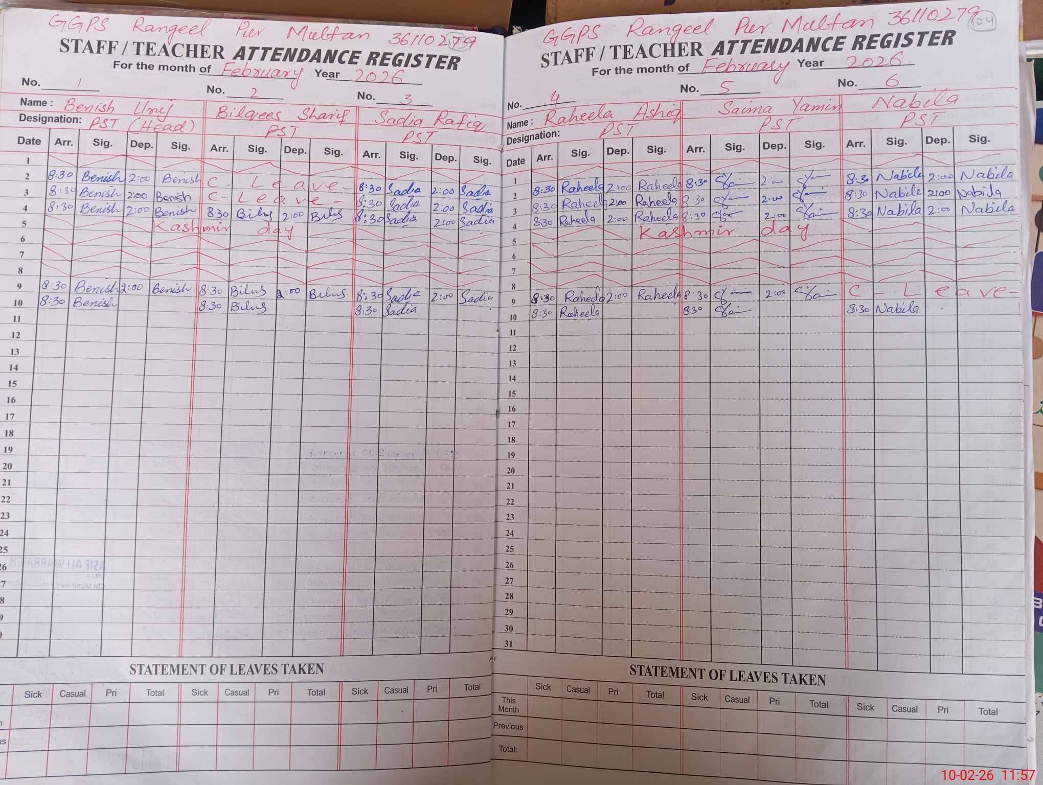 | EMIS Code: 36110279 | Name of School: GGPS RANGEEL PUR MULTAN | |||