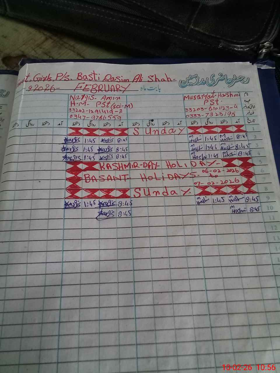 | Name: NE**** AM**** Designation: (School Headmaster's/Headmistress's) PST Phone/Cell Number: 03**** |