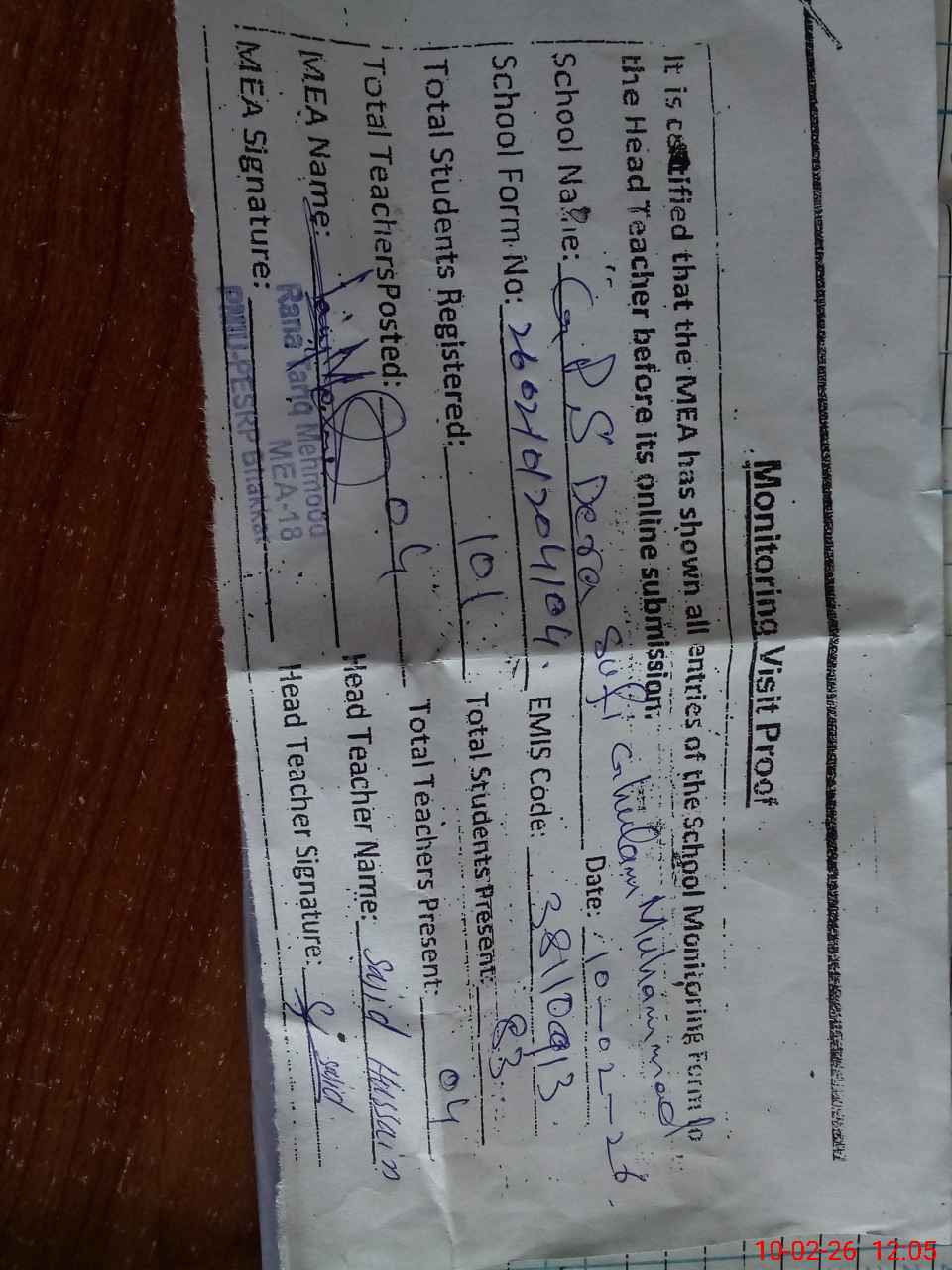 | Certified that this School was Inspected by the Undersigned MEA/DMO Today and the Information Stated Above is as Per Record. | |||||