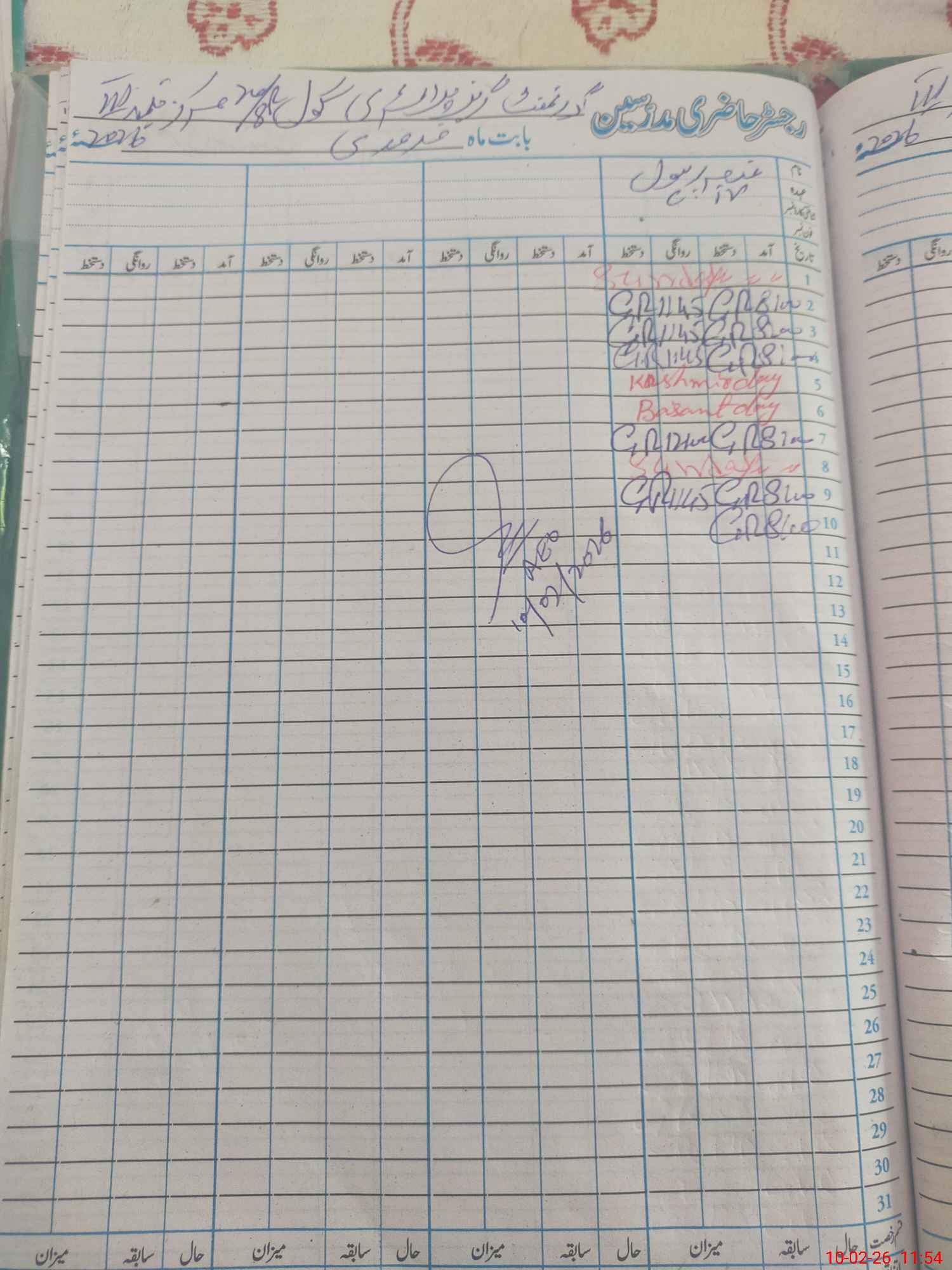 | CNIC | Full Name | Designation | R/C | Absence During Last Calender Month |