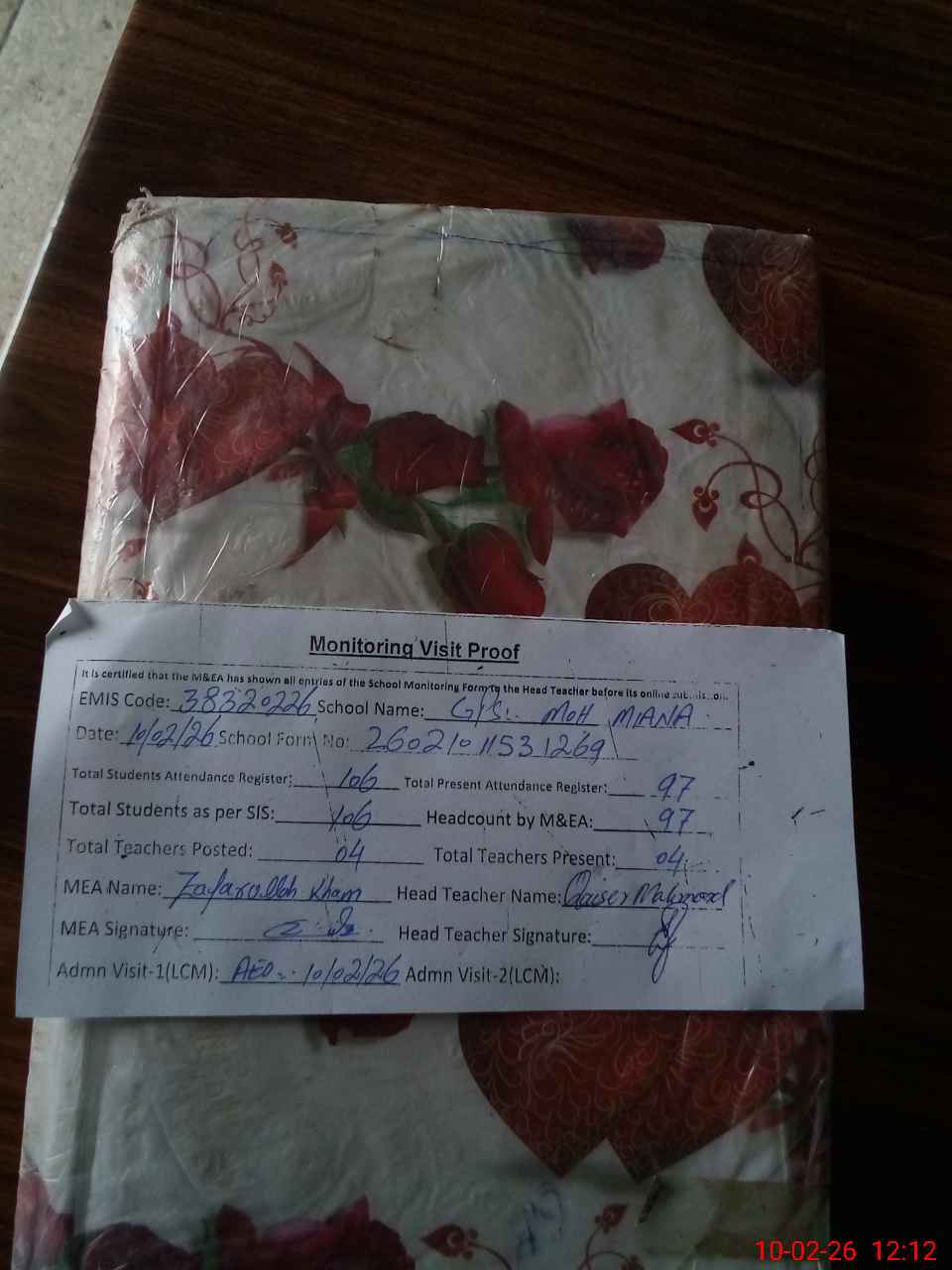 | EMIS Code: 38320226 | Name of School: GPS MOH. MIANA | |||