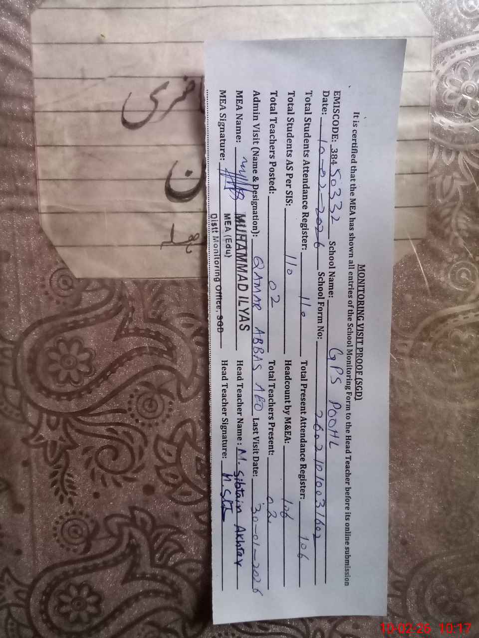 | EMIS Code: 38450332 | Name of School: GPS POOLHA | |||