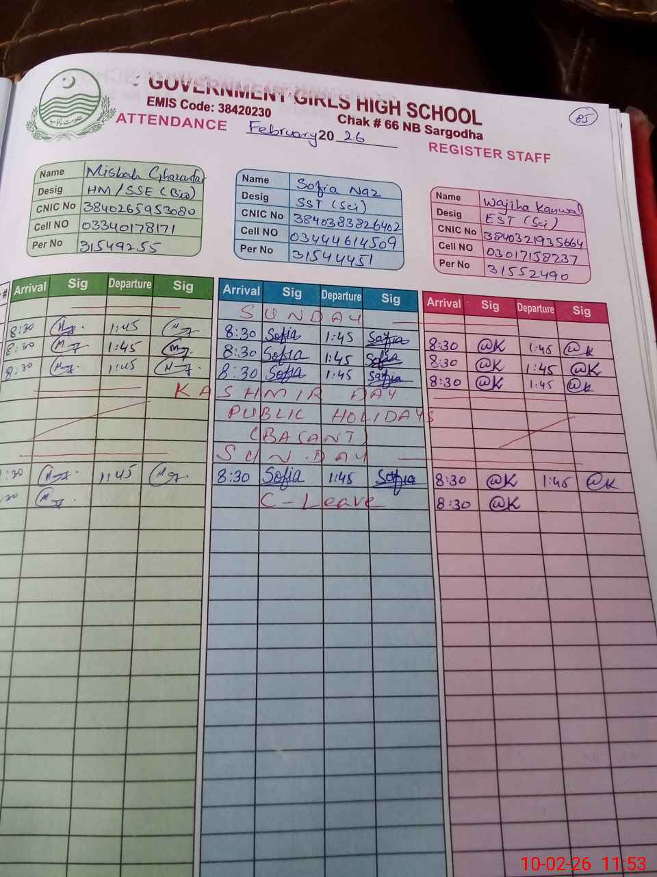 | Name: MI**** GH**** Designation: (School Headmaster's/Headmistress's) S.S.E. (Science) Phone/Cell Number: 03**** |