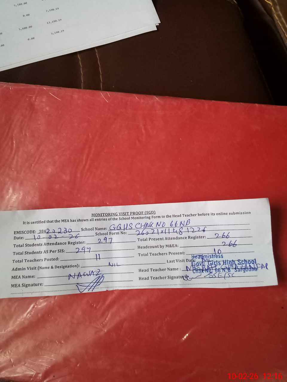 | EMIS Code: 38420230 | Name of School: GGHS CHAK NO.66 NB | |||