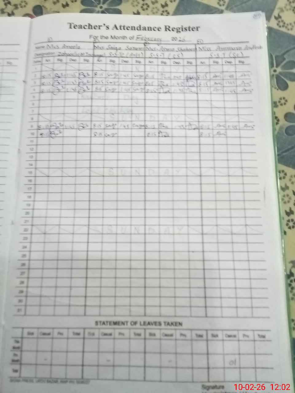 | Leave | Duty | Absent | Maternity | Medical | Ex- Pak |