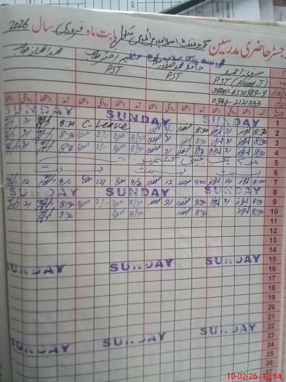 | Name: Sa**** Ah**** Designation: (School Headmaster's/Headmistress's) PST Phone/Cell Number: 03**** |