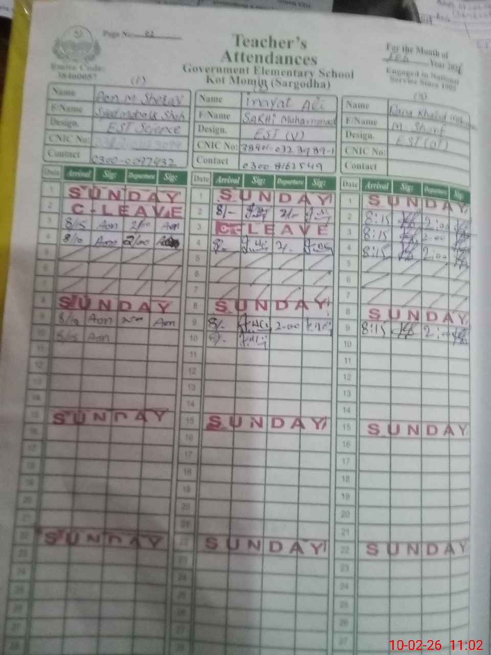 | 38**** | Mu**** Wa**** Az**** | SSE Computer Science | Contract | 0 | 0 | 0 | 0 | 0 | 0 | 0 | 0 | 0 | Absent (Un-Authorized) |