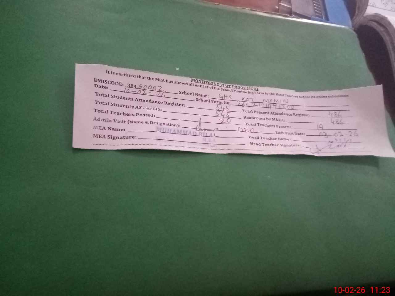 | EMIS Code: 38460002 | Name of School: GHS KOT MOMIN SALAM ROAD | |||